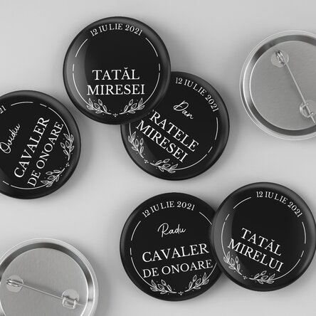 Familia și prietenii sunt alături de voi în această zi memorabilă. Insignele personalizate pot da un plus de originalitate petrecerii burlacilor sau chiar nunții. Alege să le dăruiești celor din "echipa mirelui" un obiect simbolic ce le va aminti cu drag de ziua voastră specială.