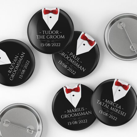 Alege să le dăruiești celor din "echipa mirelui" un obiect simbolic ce le va aminti cu drag de ziua voastră specială. Insignele personalizate pot da un plus de originalitate petrecerii burlacilor sau chiar nunții.