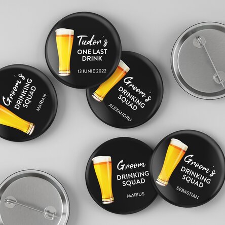 Alege să le dăruiești celor din "echipa mirelui" un obiect simbolic ce le va aminti cu drag de ziua voastră specială. Insignele personalizate pot da un plus de originalitate petrecerii burlacilor sau chiar nunții.