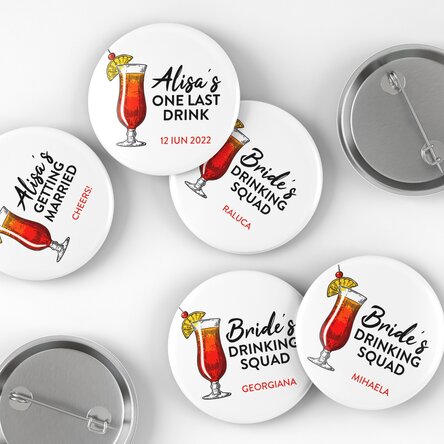 Alege să le dăruiești celor din "echipa miresei" un obiect simbolic ce le va aminti cu drag de ziua voastră specială. Insignele personalizate pot da un plus de originalitate petrecerii burlăcițelor sau chiar nunții.