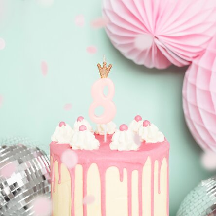 Lumânări pentru tort - Cifra roz cu coroniță 9.5cm