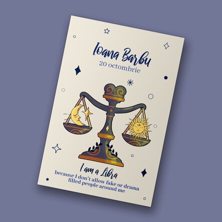 Un magnet frumos personalizat, cu un design echilibrat și elegant, va încânta Balanța, care apreciază armonia și frumusețea în tot ce o înconjoară. Ce pot personaliza? Magnetul poate fi personalizat cu text.