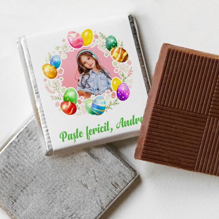 Vezi și alte Cadouri personalizate de Paște, Toate dulciurile și bomboanele personalizate, Cadouri personalizate pentru copii de Paște, Mini ciocolățele pentru copii personalizate, Mini ciocolățele personalizate, Dulciuri personalizate pentru Paște, Toate cadourile de Paște, Mini ciocolată personalizată de Paște, Dulciuri și bomboane personalizate, Cadouri de Paște reduse cu 30%, Cadouri personalizate de Paște la reducere, Mini ciocolate personalizate.