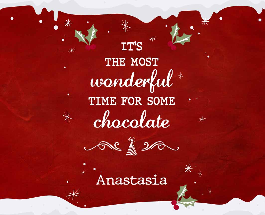 Vezi și alte Cadouri de Crăciun, Cadouri de Crăciun pentru ea, Cadouri de Crăciun pentru el, Cadouri de Crăciun pentru prieteni, Cadouri pentru primul Craciun, Mini tablete de ciocolată personalizată, Mini ciocolățele personalizate, Toate dulciurile și bomboanele personalizate, Colecția nouă de Crăciun, Cadouri de Crăciun pentru copii, Mini tableta de ciocolată personalizată de Crăciun, Mini tableta de ciocolată personalizată de Moș Nicolae, Colecție nouă - cadouri personalizate de la Moș Nicolae, Cadouri de Moș Nicolae pentru copii, Dulciuri personalizate de Crăciun, Dulciuri și bomboane personalizate, Toate cadourile de Crăciun, Mini ciocolate personalizate.