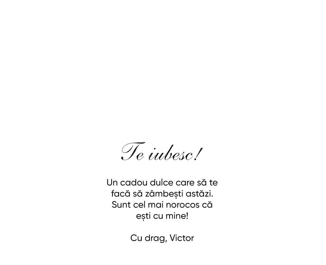 Vezi și alte Ciocolată personalizată pentru zi de naștere, Dulciuri personalizate pentru zi de naștere, Cadouri personalizate pentru iubită, Dulciuri personalizate pentru ea, Dulciuri personalizate pentru iubită, Mini ciocolățele pentru cupluri personalizate, Toate cadourile pentru iubit, Toate cadourile pentru iubită, Toate cadourile pentru iubită, Mini tablete de ciocolată personalizată, Mini ciocolățele personalizate, Toate dulciurile și bomboanele personalizate, Cadouri pentru iubitorii de ciocolată, Cadouri personalizate - Black Friday 2024, Dulciuri personalizate - Black Friday 2024, Cadouri reduse până la 40% de Black Friday 2024, Colecția nouă de Crăciun, Cadouri reduse cu 30% de Black Friday 2024, Mini tablete de ciocolată de Valentine's Day, Dulciuri și bomboane personalizate, Cadouri personalizate pentru cerere în căsătorie, Cadouri reduse cu 30% - Black Friday 2025, Dulciuri personalizate - Black Friday 2025, Cadouri reduse până la 40%, Toate cadourile reduse de Black Friday 2025, Mini ciocolate personalizate.