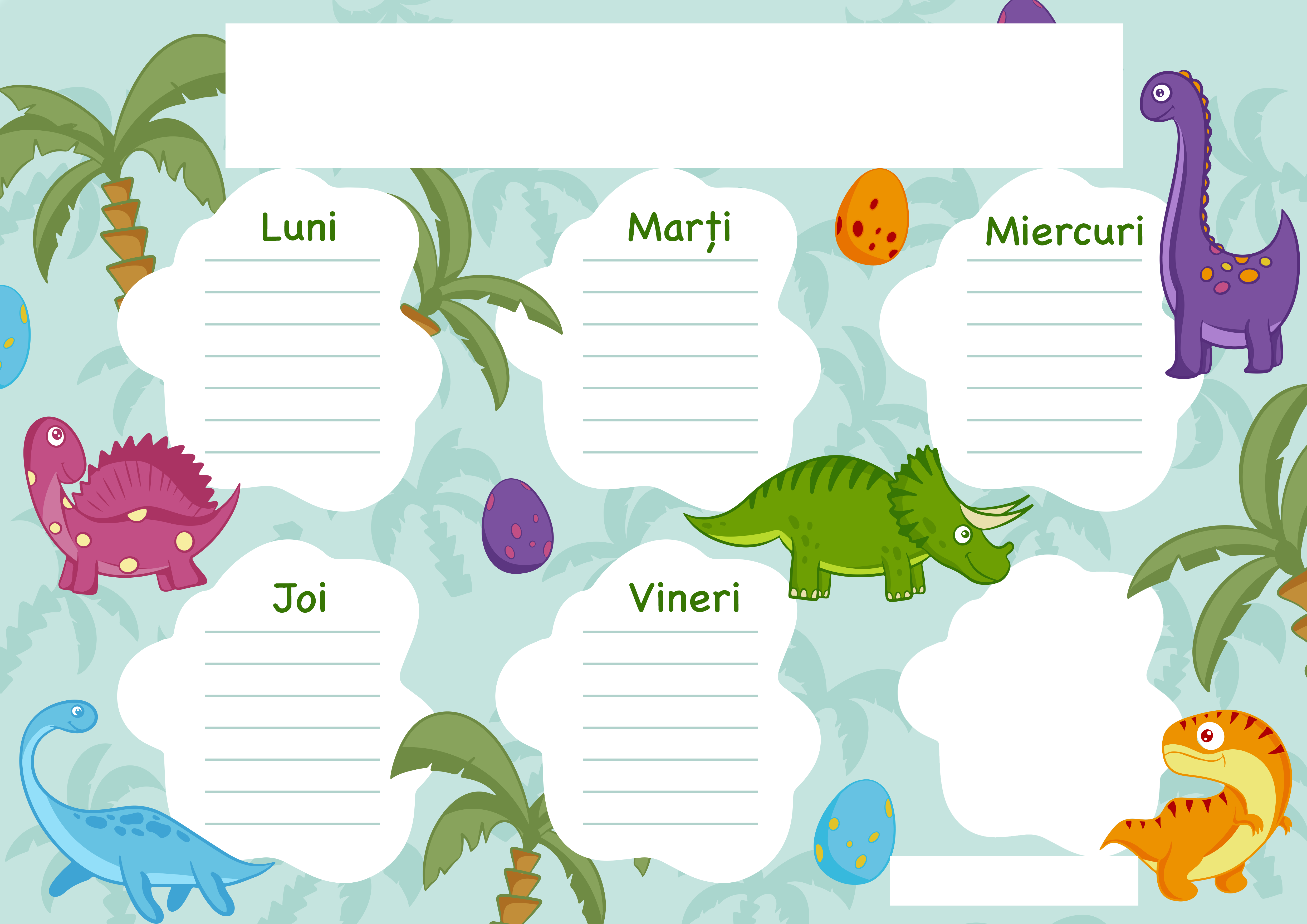 Cel mai bun mod de a ține evidența pentru toate orele celor mici este un orar bine stabilit și structurat cât mai simplu. De ce să pierzi ore până să realizezi un orar când poți personaliza foarte ușor unul pentru copilul tău?