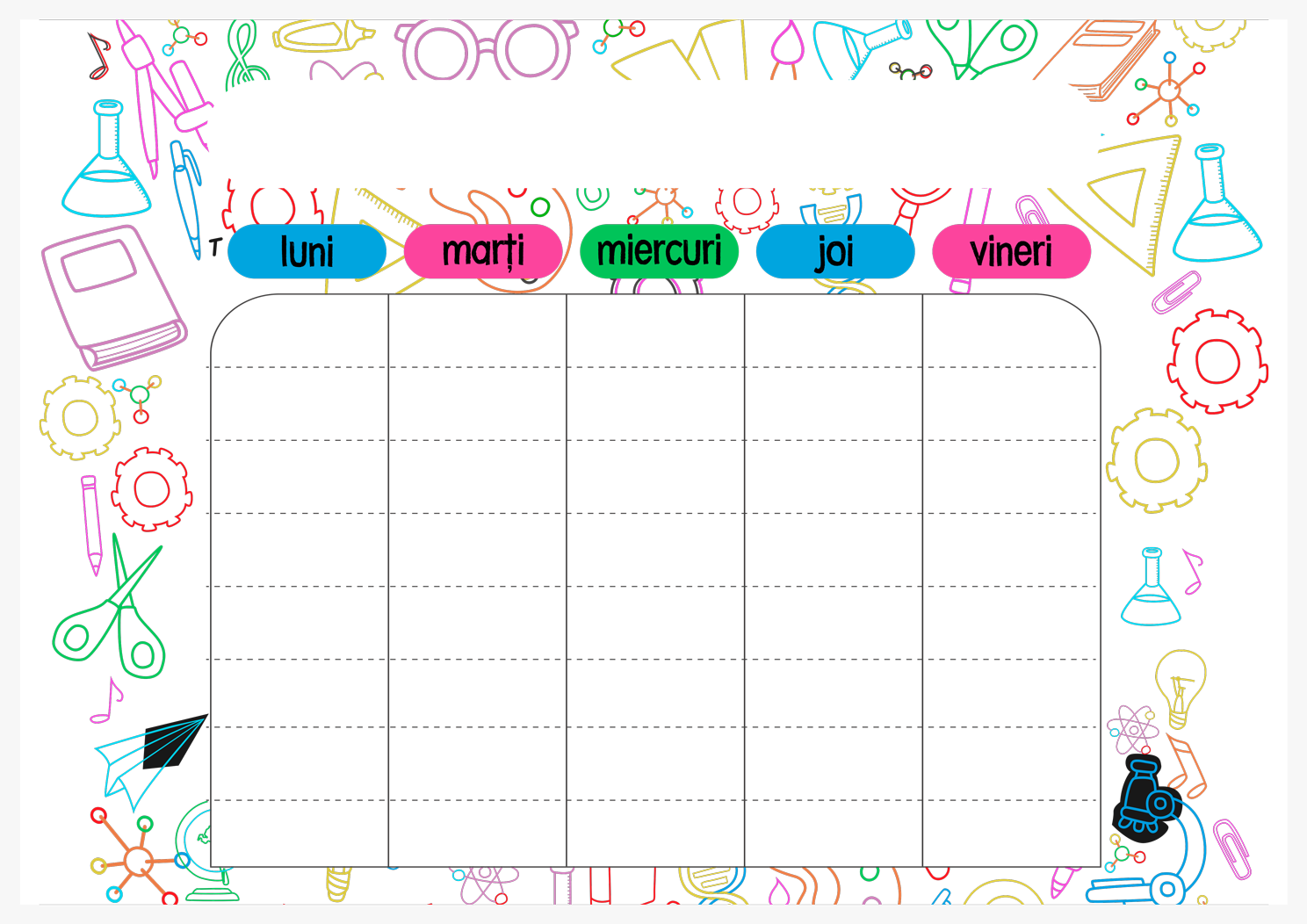 Un orar vesel și plin de culoare, gândit special pentru adolescenți. Perfect pentru a ține pasul cu școala într-un mod fun și personalizat.
