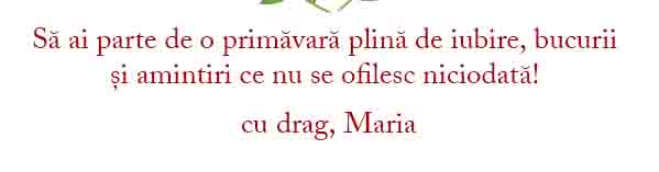Vezi și alte Cadouri de 1 martie, Cadouri de 8 Martie, Cadouri de primăvară, Cadouri de Ziua Mamei si de 8 Martie, Cadouri personalizate de 8 martie pentru mama, Colecția nouă de Mărțisor, Mărțișoare personalizate, Toate cadourile de 8 Martie, Cadouri de 8 martie pentru iubită și soție, Cadouri personalizate pentru profesoare de 8 martie, Mărțișoare pentru colege, Mărțișoare pentru profesoare / învățătoare, Ornamente din sticlă cu flori prezervate personalizate, Toate mărțișoarele personalizate, Ornamente din sticlă cu flori prezervate personalizate de 8 Martie, Reduceri săptămânale!.