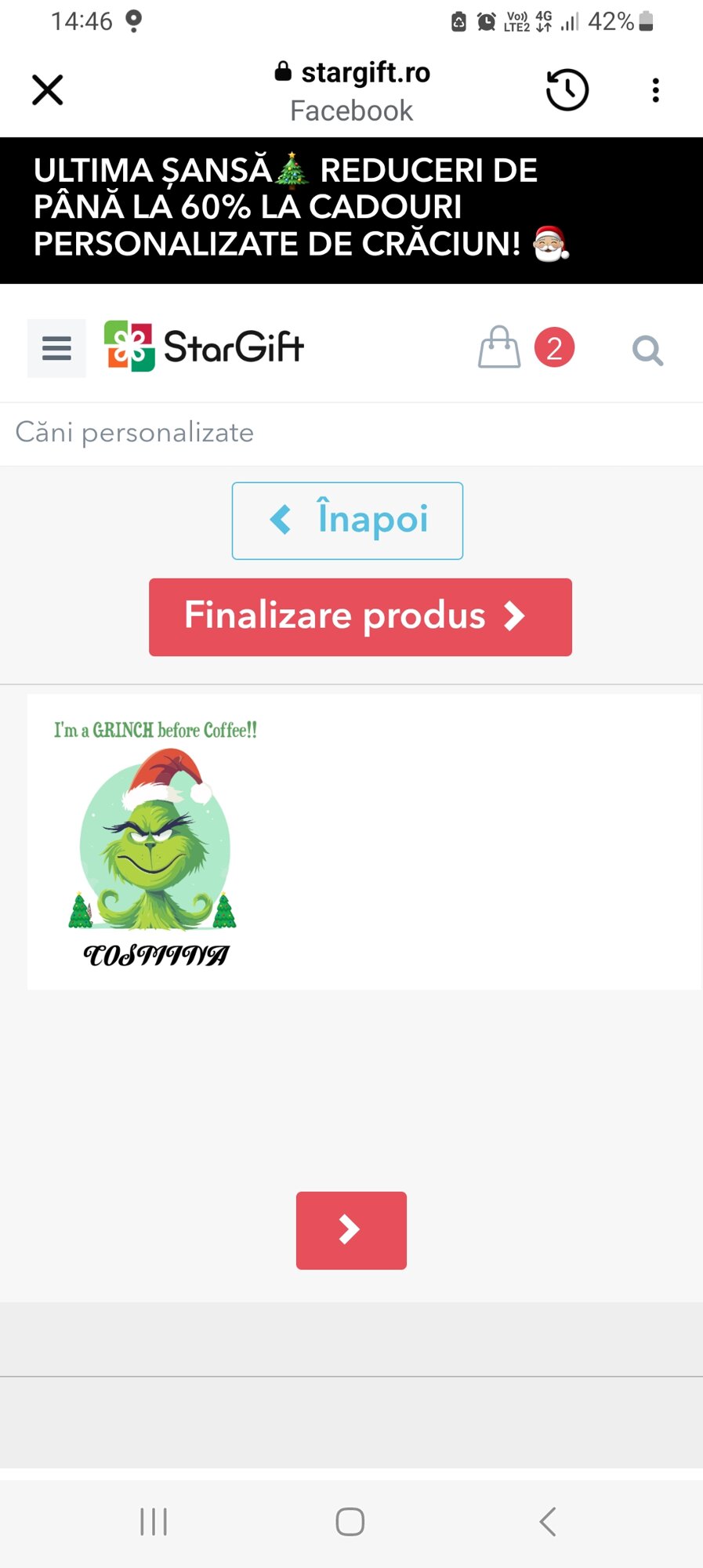 Ce pot personaliza? Perna poate fi personalizată cu text Cum pot face personalizarea? Pasul 1: Apasă pe butonul "Personalizare" Pasul 2: Alege modelul pe care vrei să îl personalizezi Pasul 3: Completează rândurile de text cu mesajul dorit, apoi apasă pe butonul "Confirmă" Pasul 4: Cum ai terminat personalizările, apasă butonul "Finalizare" și adaugă produsul în coș.