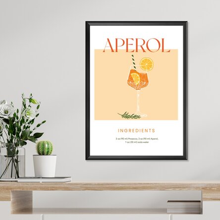 Pentru iubitorii de Aperol Spritz și momente pline de prospețime, acest poster adaugă un vibe vibrant și modern în orice spațiu. Cu tonuri de portocaliu și un design simplu, este perfect pentru un decor fresh. Un reminder că fiecare zi poate fi un motiv de sărbătoare, cu un Aperol în mână.
