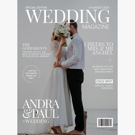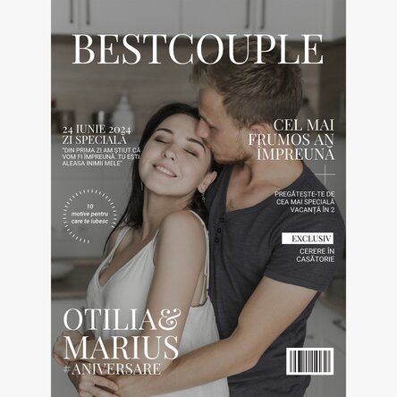 Un cadou original, elegant și plin de personalitate! Acest poster personalizat, inspirat din eleganța revistelor de modă, transformă orice fotografie într-o copertă spectaculoasă. Adaugă un mesaj simpatic, un nume, o dată specială și noi îți realizăm cel mai frumos cadou. Pentru că fiecare merită să fie vedeta propriei povești.