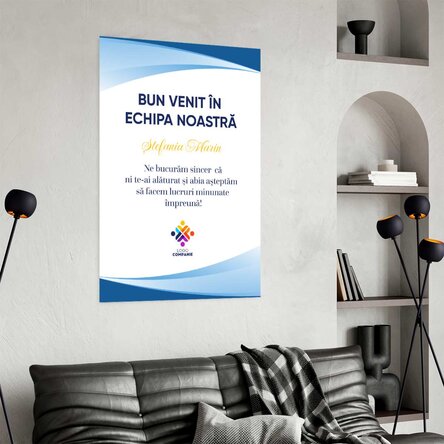 Un gest de bun venit oferit noilor colegi la începutul parcursului lor în companie. Posterul transmite apreciere, încredere și sentimentul de apartenență, fiind un cadou simbolic care marchează prima zi într-un mod pozitiv și memorabil.