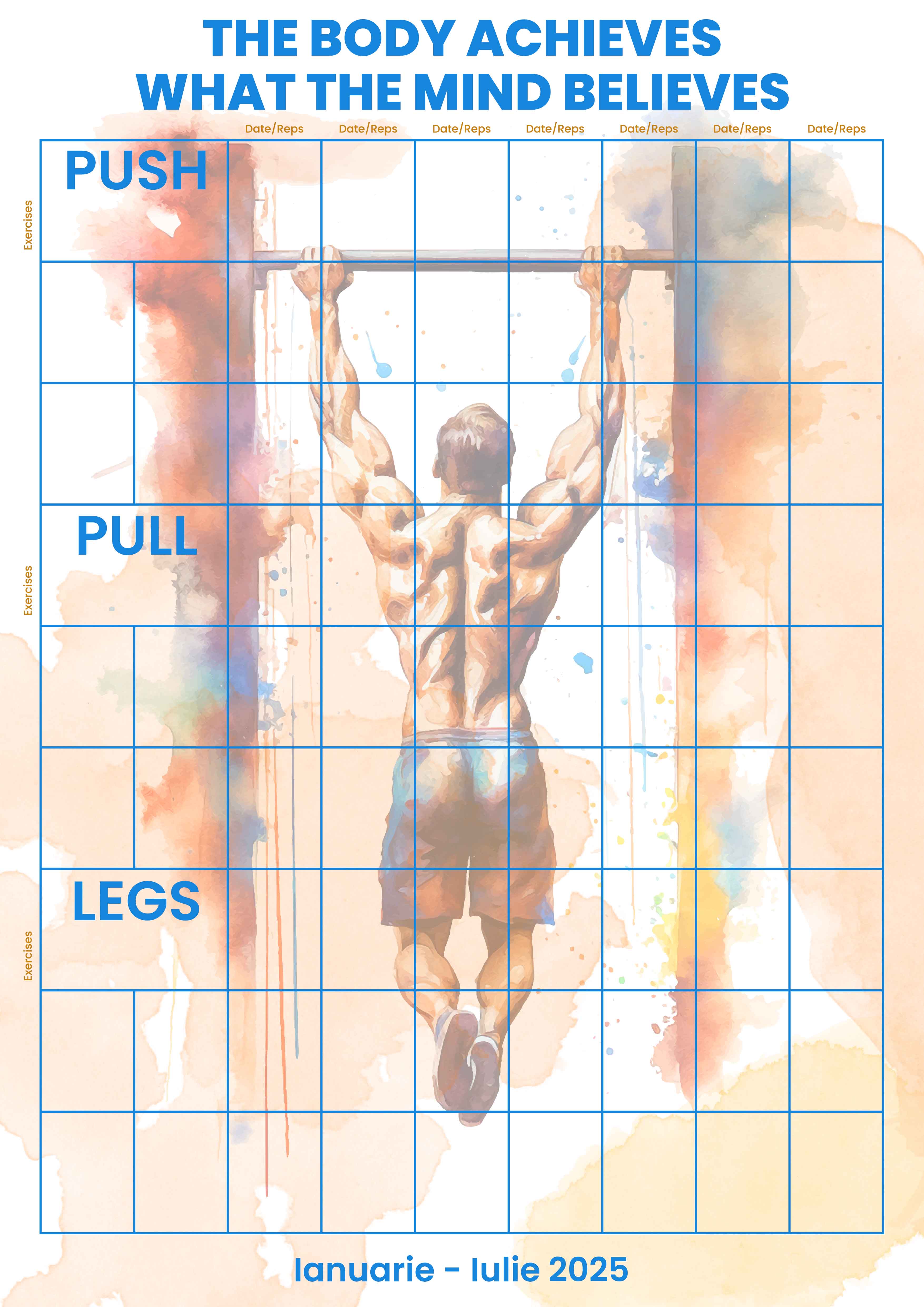 Acest poster este un instrument perfect pentru a-ți organiza și monitoriza progresul, fiind ideal pentru cei care își doresc să rămână motivați și consecvenți în atingerea obiectivelor lor. Designul captivant și energizant adaugă un plus de inspirație și determinare, transformând orice spațiu într-un loc dedicat creșterii și progresului.Ideal pentru cei pasionați de organizare și performanță, acest poster îți oferă ocazia de a aduce claritate și structură în rutina ta zilnică.