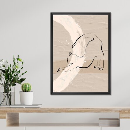 Un poster artistic ce surprinde un gest simplu, dar plin de viață – întinderea leneșă a unei pisici, desenată în linii fluide peste un fundal texturat în tonuri calde de bej. Stilul minimalist se îmbină cu expresivitatea gestuală, evocând calm, relaxare și acea eleganță naturală specifică felinelor.