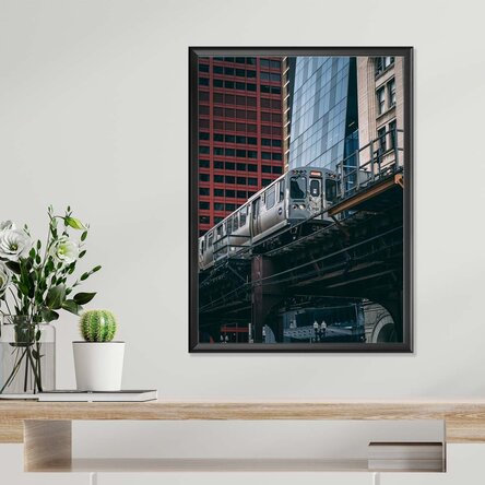 Un poster ce redă un peisaj urban plin de dinamism și personalitate, cu accente clasice și o atmosferă atemporală. Ideal pentru a aduce un plus de stil și profunzime în orice spațiu.