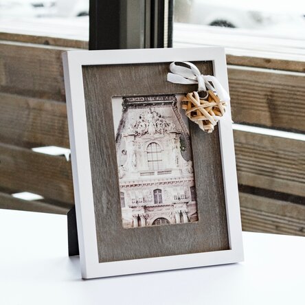 Încălzește-i inima cu un cadou drăgălaș! Rama noastră foto cu fundiță și inimă din lemn este cadoul ideal pentru prietenă, soție, mamă, bunică și chiar pentru o fetiță. Cu un design feminin inspirat din stilul shabby chic, este un cadou micuț și simplu, cu care nu poți da greș. Tot ce trebuie să faci este să adaugi o poză specială et voilà, ai cadoul perfect! Amintirile sunt printre cele mai neprețuite cadouri pe care ni le putem oferi! Alege una din ele și fii sigur că rama va avea loc de cinste în camera de zi sau dormitor.