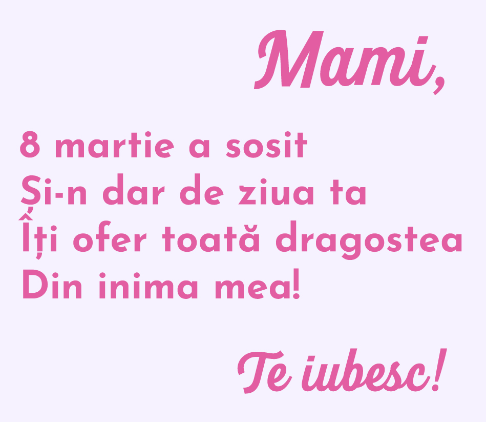 Pentru felul cum s-au dedicat pentru noi, merită să le oferim toată recunoștința și să le spunem ori de câte ori avem ocazia "mamă" și cât de mult o iubim și o apreciem pentru ceea ce este. Alege cea mai frumoasă fotografie care surprinde unul dintre cele mai dragi momente și alături de un mesaj, transmite-i mamei tale cât de mult înseamnă pentru tine.