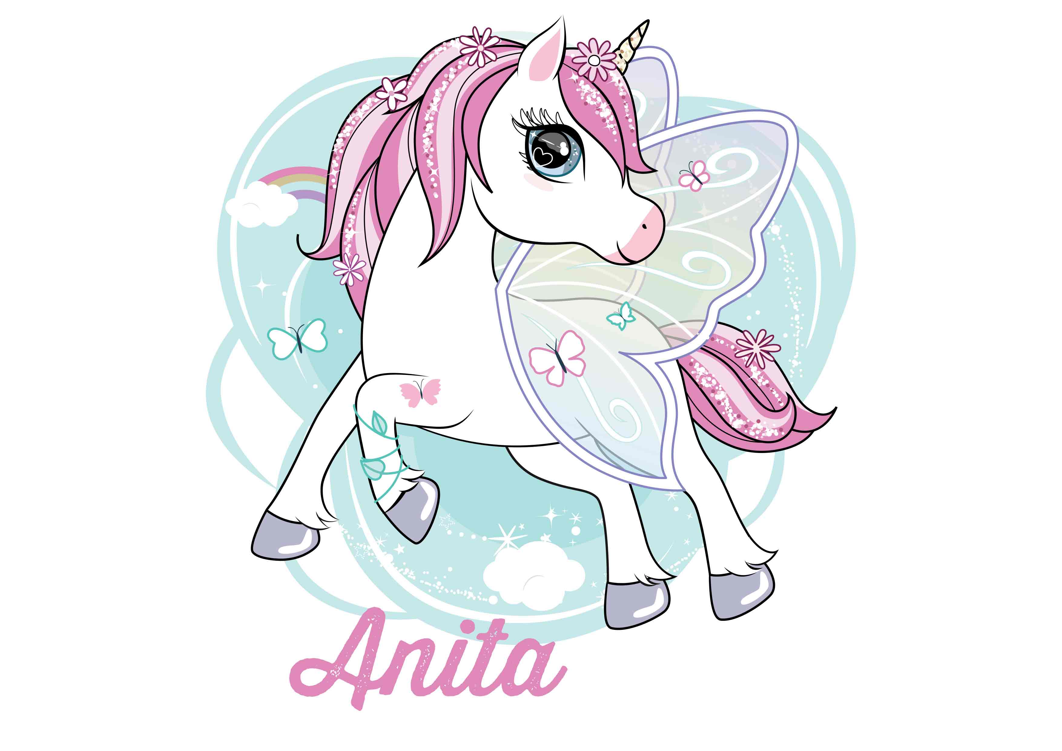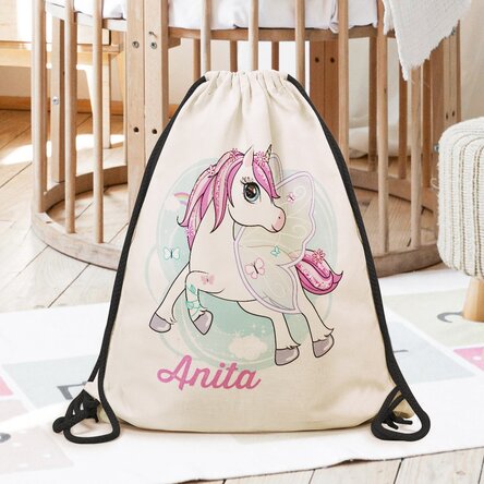 Rucsac personalizat cu nume - Unicorn și fluturași