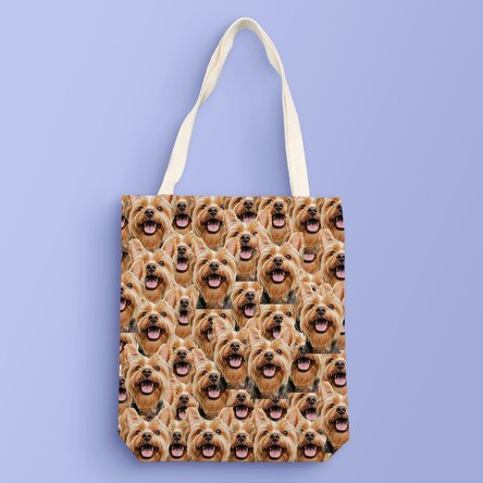 De ce să alegi o sacoșă obișnuită când poți purta cu tine, la propriu, fața cățelului tău sau a cuiva drag oriunde te duci? Această sacoșă personalizată, cu aceeași poză repetată de nenumărate ori, este perfectă pentru a arăta tuturor cine este adevărata vedetă în viața ta! Fie că vrei să te lauzi cu animăluțul tău adorabil sau să îi faci pe toți să râdă când văd fața prietenului tău pe o sacoșă, acest accesoriu îți garantează atenția! Perfectă pentru cumpărături, plimbări sau chiar la birou.