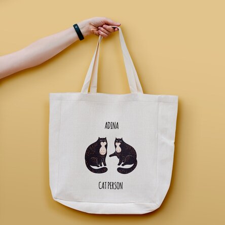 Sau daca ai un prieten sau o prietena inebunita dupa ghemotoace simpatice, sacosa personalizata cu pisicute este perfecta pentru onomastica ei sau cadoul de Craciun.