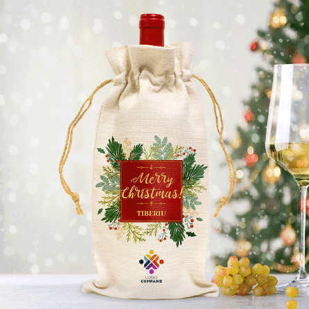 Adaugă un strop de magie de Crăciun cu acest săculeț personalizat pentru sticla de vin, cadoul perfect din partea firmei pentru angajați! Cu un design festiv și mesajul personalizat, săculețul transformă orice sticlă de vin într-un dar special, gata să fie apreciat la masa de Crăciun. Este simplu, elegant și plin de farmec, perfect pentru a spune „Mulțumim!” într-un mod cald și prietenos. Pentru că uneori, un mic detaliu face toată diferența!