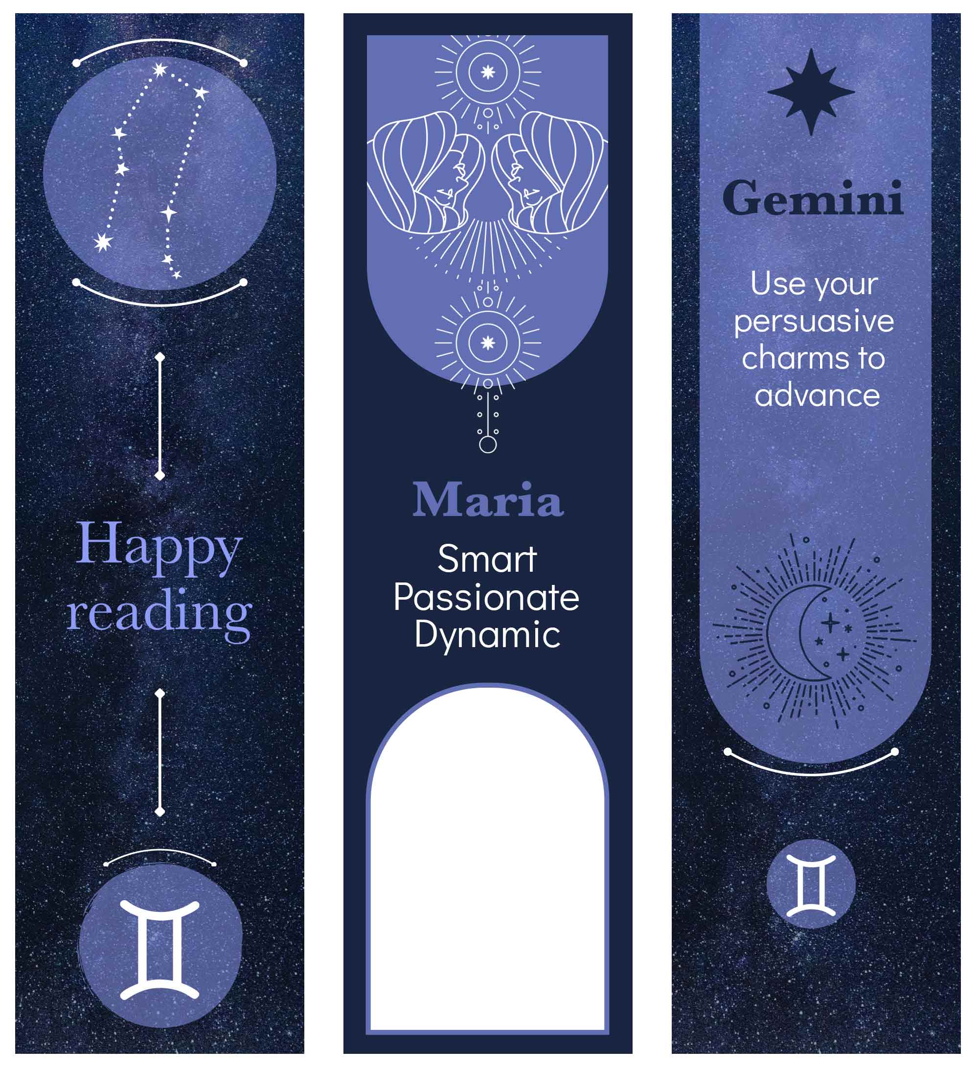 Gemenii adoră să sară de la un subiect la altul și să își exploreze curiozitatea. Un set de semne de carte personalizate le va permite să-și păstreze locul în toate lecturile lor multiple, reflectând natura lor dinamică și plină de viață.