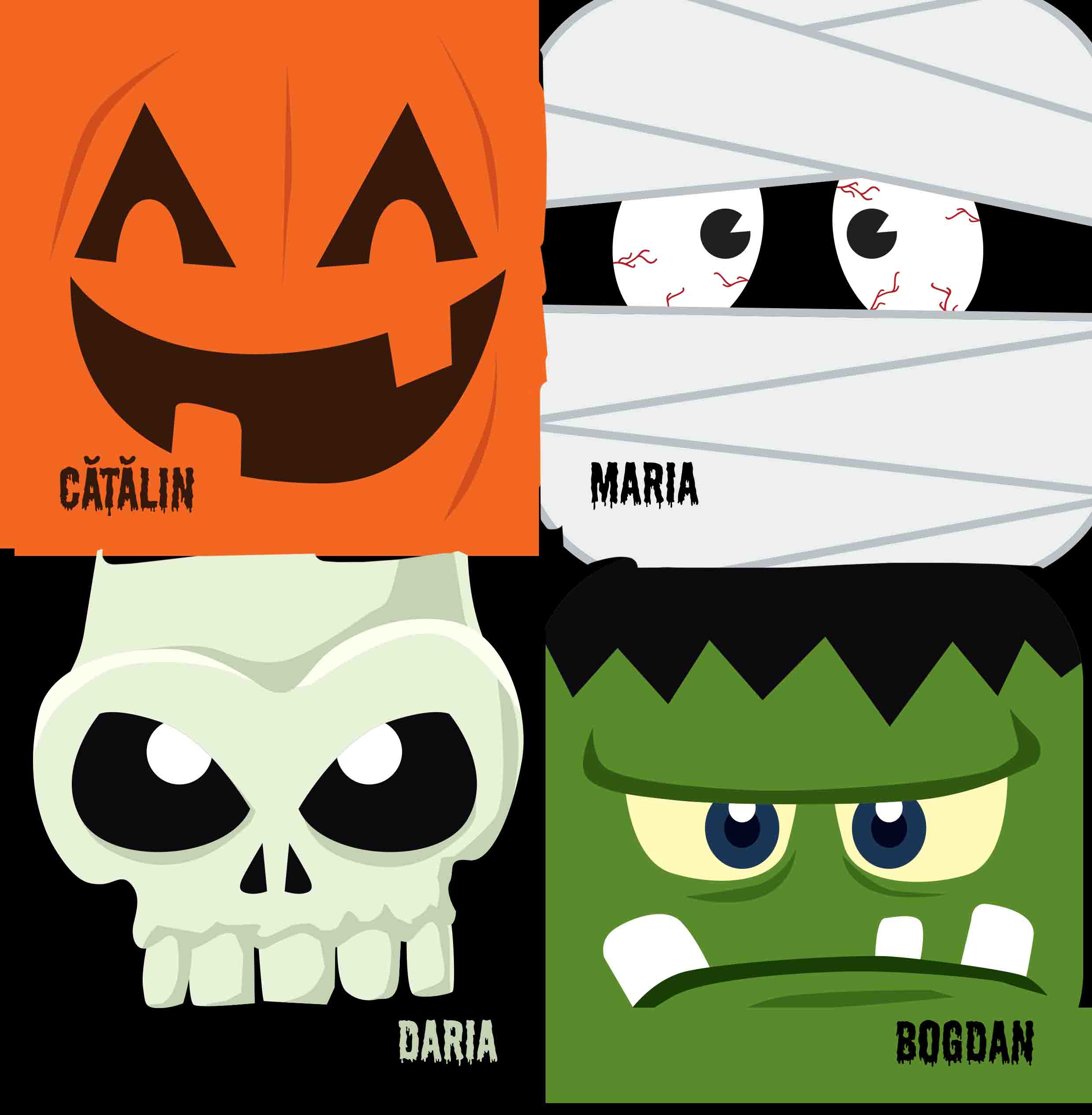 Transformă mesele de Halloween într-o experiență amuzantă și specială! Acest set include 4 suporturi de pahar unice, fiecare ilustrat cu monstruleți simpatici și înfricoșători în același timp. Personalizează-le cu nume pentru a adăuga o notă personală și creativă.