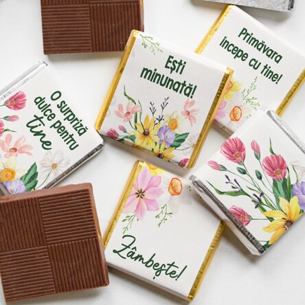 🌸 Mini ciocolățelele cu mesaje de primăvară sunt perfecte pentru a îndulci ziua și a transmite gânduri frumoase.