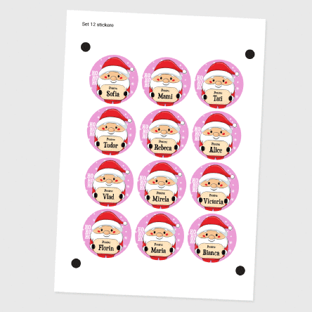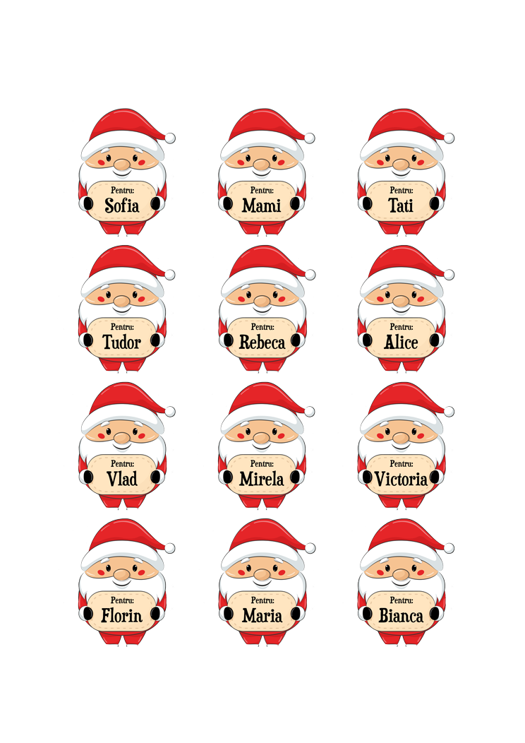 Un set drăguț de stickere personalizate de Crăciun cu nume, perfecte pentru a le lipi pe cadouri, adaugă o notă de magie personalizată sărbătorilor tale! Fiecare sticker poate fi personalizat cu numele celor dragi, transformând fiecare pachet de cadouri într-o surpriză cu adevărat specială.