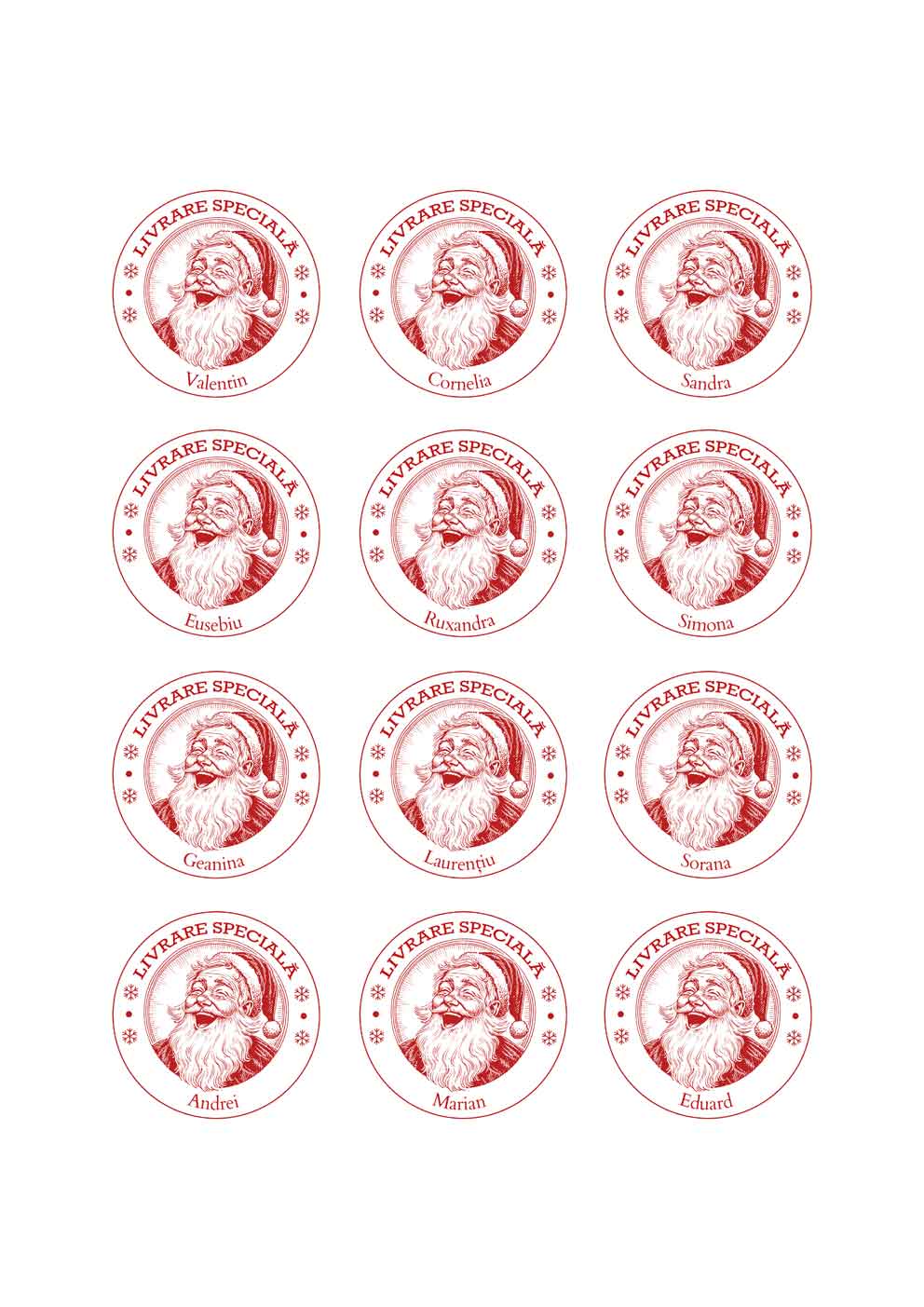 Un set drăguț de stickere personalizate de Crăciun cu nume, perfecte pentru a le lipi pe cadouri, adaugă o notă de magie personalizată sărbătorilor tale! Fiecare sticker poate fi personalizat cu numele celor dragi, transformând fiecare pachet de cadouri într-o surpriză cu adevărat specială.