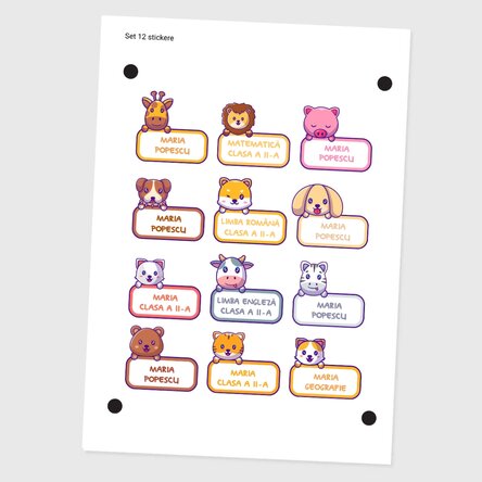 Acum ai cele mai colorate stickere, ușor de completat și folosit. Acestea pot fi aplicate în încăperi precum camera copiilor, camera de zi, birouri, saloane, pe suprafețe netede (mobilă, geamuri, uși, vitrine, faianță) sau pe caiete, rechizite școlare.