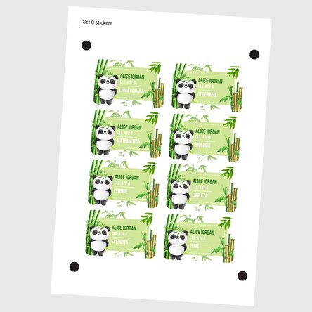 Stickere simpatice cu panda, ideale pentru copiii care încep școala. Ilustrații vesele și colorate, perfecte pentru decorarea rechizitelor și caietelor.