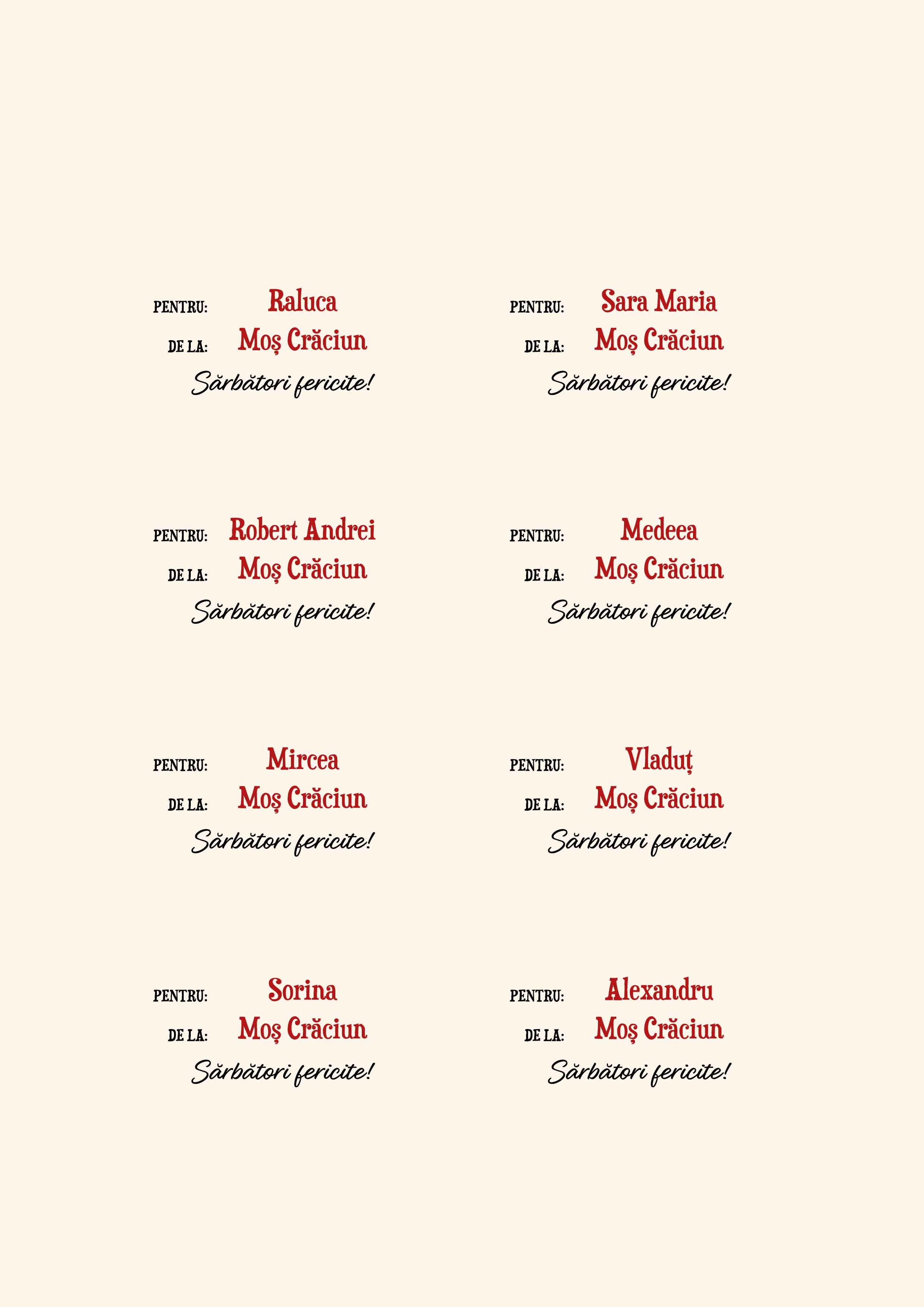Set de 8 stickere (etichetă autoadezivă) personalizate cu text - Cu drag, Moș Crăciun