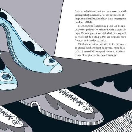 Cartea este o poveste haioasă și în același timp duioasă, o poveste despre perspective și empatie. O poveste care va dezvolta atât creativitatea, empatia, cât și gândirea critică a copiilor. Bucuria pantofului nu este pentru viața care îl așteaptă la palat, ci pentru regăsirea fratelui său. Un pantof nu poate dansa de unul singur prin viață.