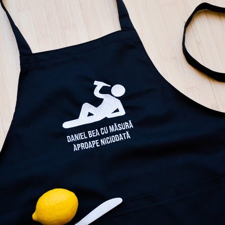 Din motive tehnice, mașinile de brodat nu pot scrie cu diacritice.Vezi și alte Cadouri pentru coleg, Cadouri personalizate pentru el, Cadouri pentru fin, Cadouri pentru frate, Cadouri pentru naș, Cadouri pentru prieten, Cadouri pentru soț, Cadouri personalizate, Sorțuri personalizate prin broderie, Recomandările noastre, Bucataria, Adulți, Cadouri de purtat, Cadouri pentru pasionații de bucătărie, Toate accesoriile de bucătărie, Șorțuri personalizate pentru el, Toate cadourile pentru el, Cadouri amuzante si haioase, Șorțuri personalizate cu poză sau broderie.