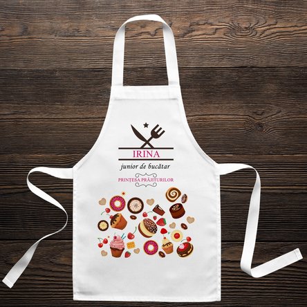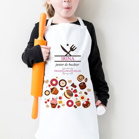 Fie că ajută la realizarea unei prăjituri delicioase sau pregătesc cina alături de mama pentru întreaga familie, cu un sorț personalizat, creat special pentru bucătarul/bucătăreasa junior, cei mici se vor bucura din plin de activitățile în bucătărie!