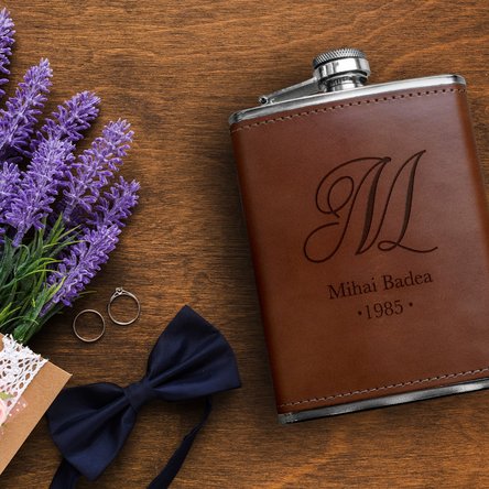 Fiind de dimensiuni mici, aceasta poate fi purtată cu ușurință în buzunarul de la pantaloni sau în buzunarele înguste de la geci ori poate fi transportată în buzunarele înguste din bagaj. Sticla de buzunar este îmbrăcată în piele de culoare maro închis, astfel încât sticla nu are cum să iți alunece din mănă. Cu o formă elegantă și un design unic, personalizarea se realizează pe o singură față a sticlei.