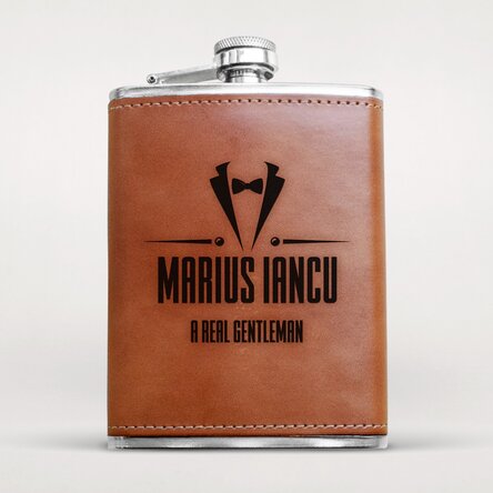 Fiind de dimensiuni mici, aceasta poate fi purtată cu ușurință în buzunarul de la pantaloni sau în buzunarele înguste de la geci ori poate fi transportată în buzunarele înguste din bagaj. Sticla de buzunar este îmbrăcată în piele de culoare maro închis, astfel încât sticla nu are cum să iți alunece din mănă. Cu o formă elegantă și un design unic, personalizarea se realizează pe o singură față a sticlei.