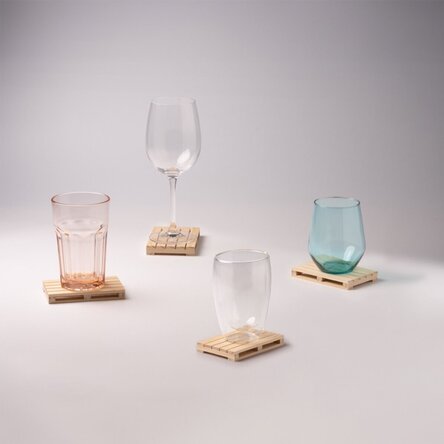 Fabricat din lemn de înaltă calitate, acest suport de pahar este modelat după miniatura unui palet folosit în depozite și transport, oferind un aspect autentic. Fiecare suport este prevăzut cu mici spații între „scânduri”, ceea ce adaugă o notă realistă designului.