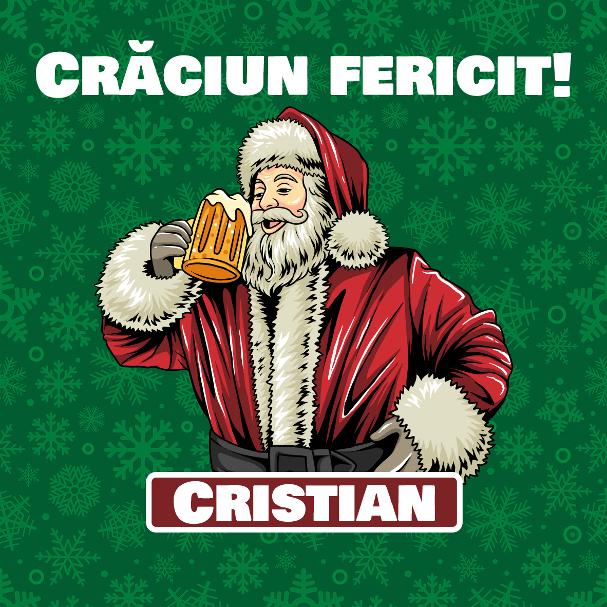 Suport pentru pahar personalizat cu text - Moș Crăciun cu bere
