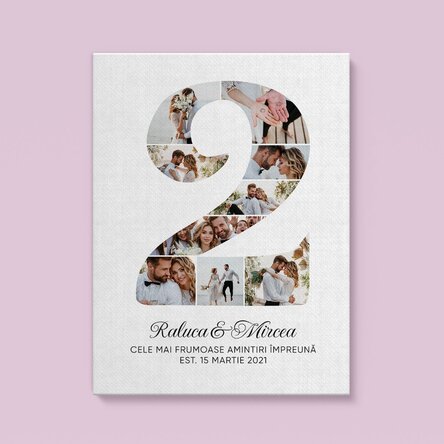 Această ocazie importantă poate fi celebrată oferind cuplului un cadou inedit, special și plin de emoție. Tabloul personalizat cu fotografii și mesaj este ideal pentru a marca un astfel de eveniment și este o modalitate excelentă de a le arată recunoștința și aprecierea pe care le-o porți. Ce pot personaliza? Printul poate fi personalizat cu 9 fotografii și text.