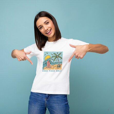 Spune-i "Hello" verii cu acest model de tricou personalizat. Vacanțe, ieșiri la grătare, plimbări, soare, mare ori city-break-uri? Fii în ton cu concediul tău și crează-ți un tricou vesel, numai bun de luat în vacanțe și purtat la orice ținută casual.