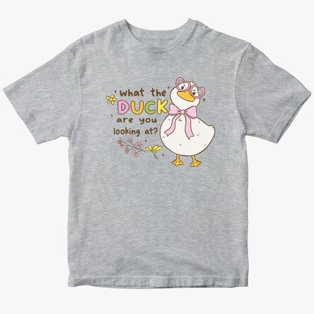 Ieși din tipare cu un tricou care combină adorabilul cu umorul! Acest tricou are imprimat un rățoi simpatic, însoțit de mesajul haios „What the duck are you looking at?”. Ideal pentru cei cu un simț al umorului bine dezvoltat și o atitudine relaxată, acest tricou este perfect pentru cadouri amuzante sau pur și simplu pentru a-ți exprima personalitatea.