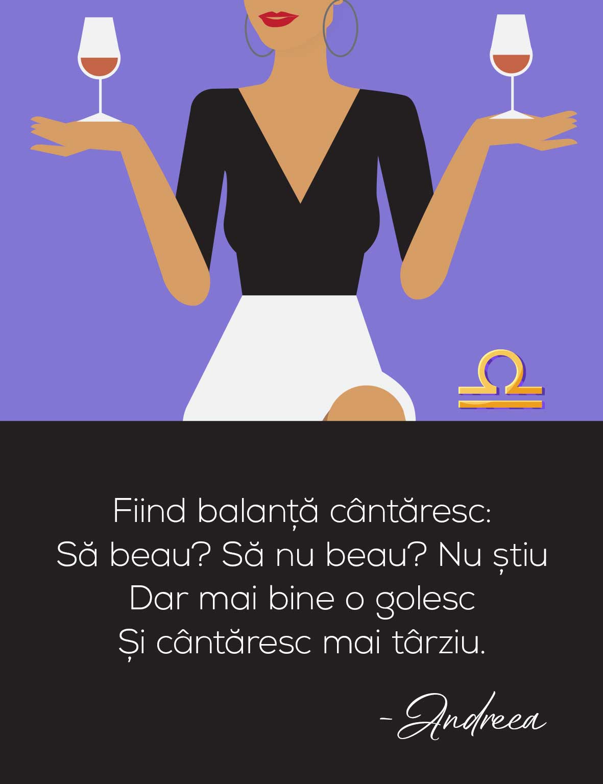Indiferent de câte decizii trebuie să cântărească în viață, este întotdeauna o alegere bună ca cei născuți în zodia Balanței să deschidă o sticlă de vin. Oferă-le un cadou personalizat inedit, subliniind trăsăturile lor principale într-un mod amuzant și original.