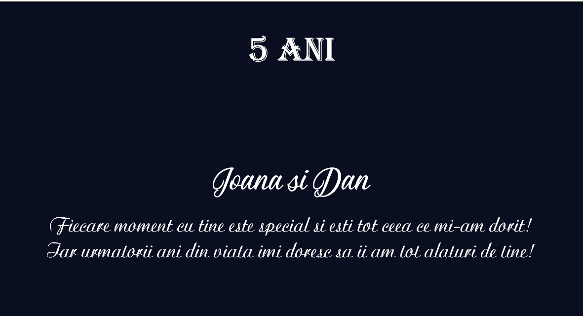 Ce poate fi mai frumos decât să îi amintești cați ani/luni aveți împreună și alaturi să îi spui cât de mult o iubești sau ce simți pentru ea. Atașează și o fotografie reprezentativă, una din acelea care peste ani le v-a privi cu nostalgie și… asta-i cadoul!
