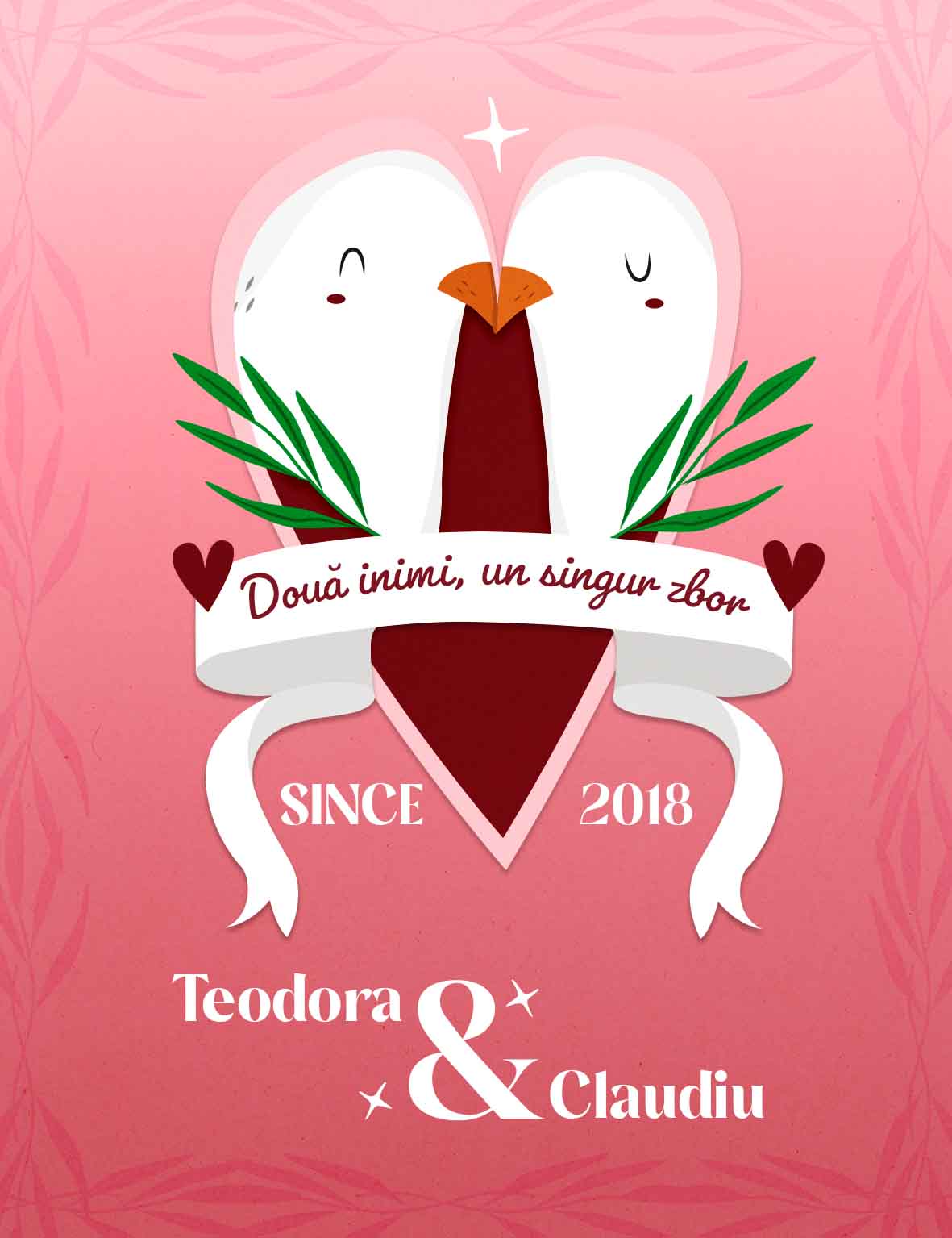 Surprinde-ți persoana iubită cu un cadou unic și plin de emoție cu o sticlă de vin personalizată cu un design romantic, creat special pentru a celebra iubirea. Fiecare detaliu al etichetei – de la porumbeii simbolizând uniunea eternă până la mesajul personalizat – transformă acest vin într-o declarație de dragoste elegantă și memorabilă.