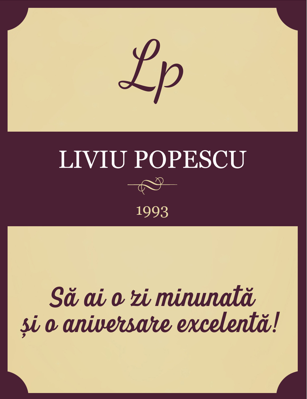 Vezi și alte Cadouri de mulțumire, Cadouri personalizate pentru el, Cadouri pentru frate, Cadouri pentru șef, Cu alcool, Cadouri personalizate, Recomandările noastre, Cadouri pentru pasionații de vinuri, Adulți, Băuturi personalizate pentru zi de naștere, Vinuri personalizate pentru el, Cadouri de zi de naștere pentru el, Toate cadourile pentru el, Vinuri personalizate, Vinuri personalizate, Vinuri personalizate cu mesaj, Vinuri personalizate pentru zile de naștere, Toate vinurile personalizate, Băuturi personalizate, Toate cadourile de zi de naștere, Cadouri zi onomastică.