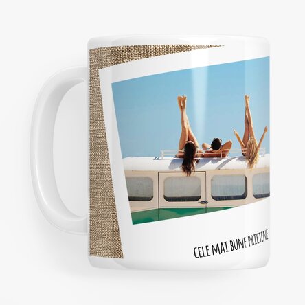 Dăruiește persoanei iubite momentele voastre cele mai dragi prin căni personalizate cu toartă în formă de inimă.