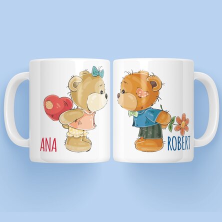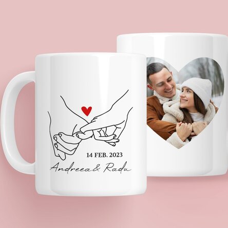 Dăruiește persoanei iubite momentele voastre cele mai dragi prin căni personalizate cu toartă în formă de inimă.
