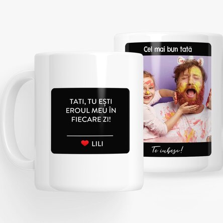 Surprinde emoția printr-un cadou de poveste! Cănile complet neagre cu imagini sau text au un efect wow pentru oricine o primește în dar.